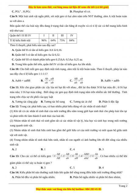Câu 13: Cho các cá thể có kiểu gen: . Có bao nhiêu cá thể khi