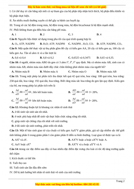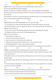 Câu 7: Có bao nhiêu phát biểu sau đây đúng khi nói về cân bằng nội môi? Trang 1