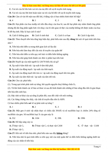 Câu 16: Phát biểu nào sau đây không đúng khi nói về các cấp tổ chức sống?