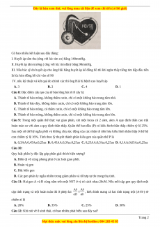 Câu 19: Trong trường hợp mỗi gen quy định 1 tính trạng, tính trạng trội là trội hoàn toàn không có hiện