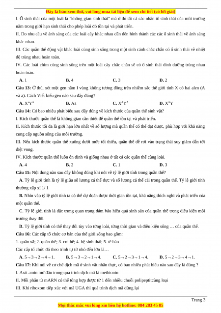 Câu 12: Khi nói về ổ sinh thái, có bao nhiêu phát biểu sau đây sai? Trang 2