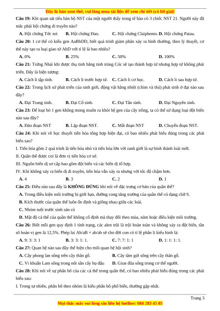 Câu 19: Khi quan sát tiêu bản bộ NST của một người thấy trong tế bào có 3 chiếc NST 21. Người này đã
