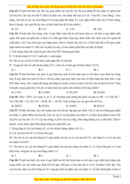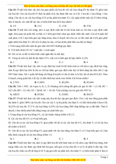 Câu 26: Biết mỗi gen quy định 1 tính trạng, các alen trội là trội hoàn toàn và không xảy ra đột biến, tần