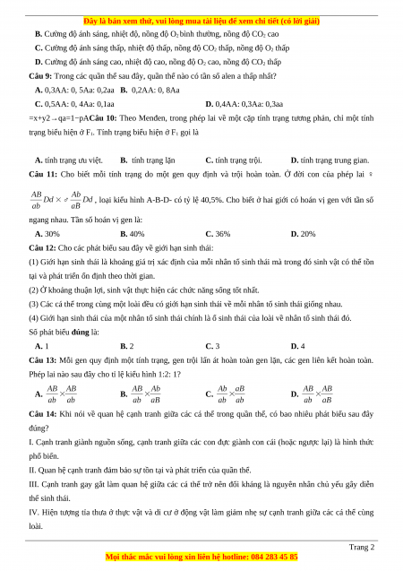 Câu 14: Khi nói về quan hệ cạnh tranh giữa các cá thể trong quần thể, có bao nhiêu phát biểu sau đây đúng?