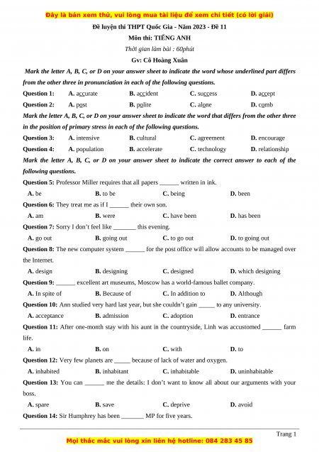 Đề luyện thi THPT Quốc Gia - Năm 2023 - Đề 11 Môn thi: TIẾNG ANH