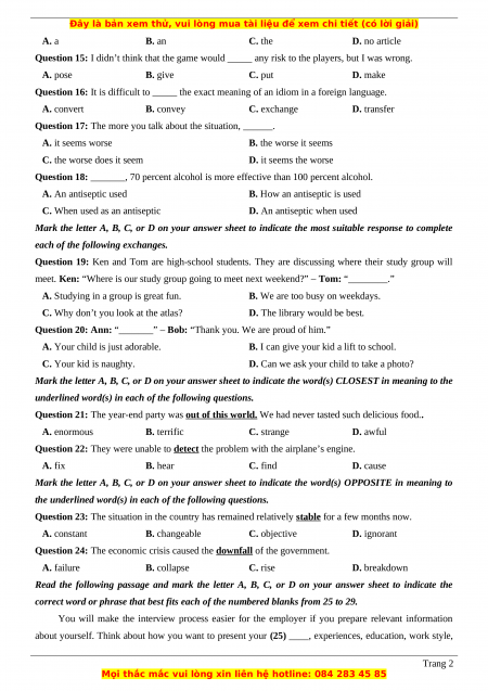 Đây là bản xem thử, vui lòng mua tài liệu để xem chi tiết (có lời giải)