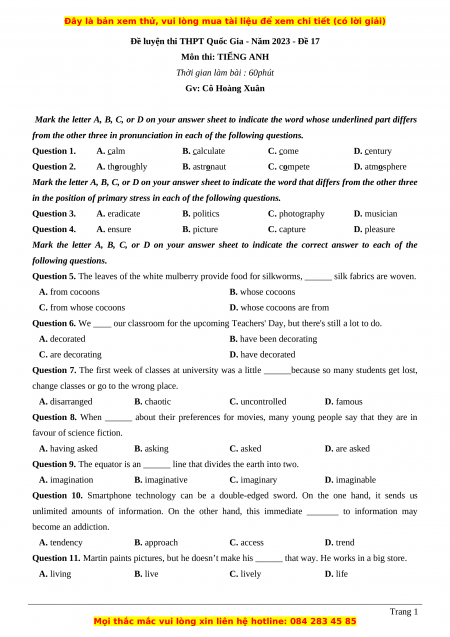 Đề luyện thi THPT Quốc Gia - Năm 2023 - Đề 17 Môn thi: TIẾNG ANH