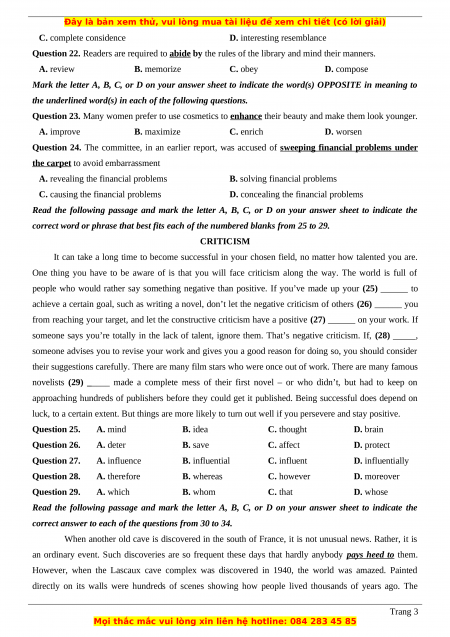 Đây là bản xem thử, vui lòng mua tài liệu để xem chi tiết (có lời giải)