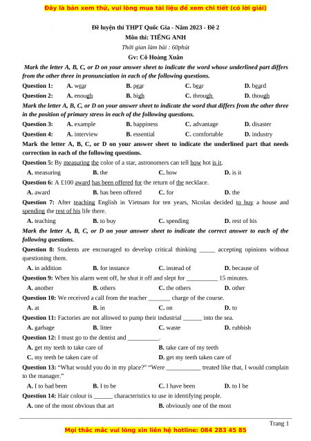 Đề luyện thi THPT Quốc Gia - Năm 2023 - Đề 2 Môn thi: TIẾNG ANH
