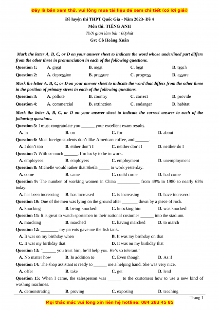 Đề luyện thi THPT Quốc Gia - Năm 2023- Đề 4
