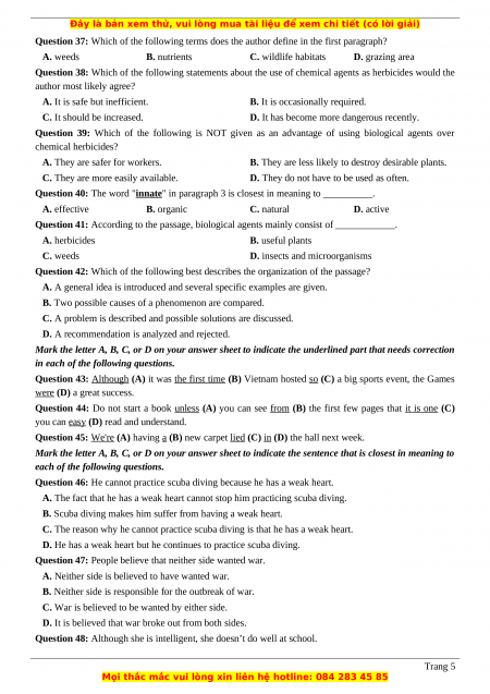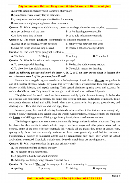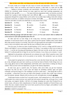 Question 15: When I came, the salesperson was ______ to the customers how to use a new kind of washing machines. A. demonstrating B. proving C. exposing D. teaching Trang 1