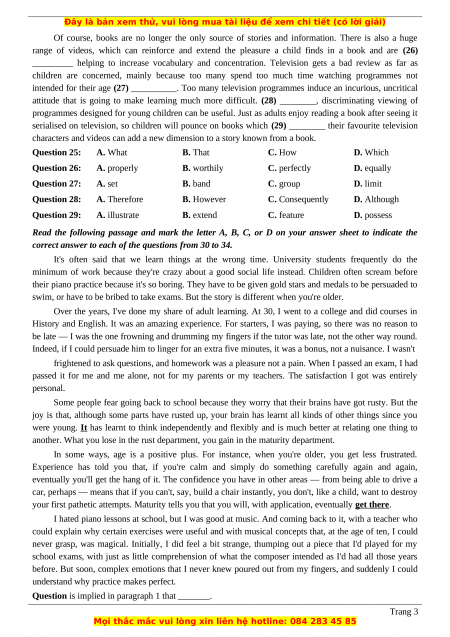 characters and videos can add a new dimension to a story known from a book. Question 25: A. What B. That C. How D. Which Question 26: A. properly B. worthily C. perfectly D. equally Question 27: A. set B. band C. group D. limit Question 28: A. Therefore B. However C. Consequently D. Although Question 29: A. illustrate B. extend C. feature D. possess