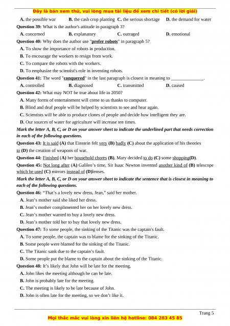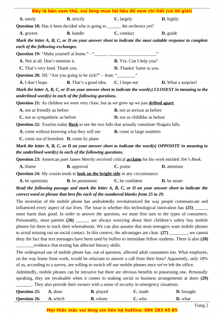 Đây là bản xem thử, vui lòng mua tài liệu để xem chi tiết (có lời giải)