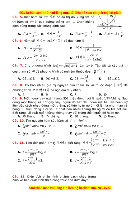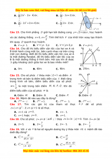 tục như thế, ta được diện tích Tính A. B. C. D. Câu 24. Cho Khi đó bằng A. B. C. D. Câu 25. Cho hàm số có đồ thị như hình vẽ bên, và là các tiếp tuyến của