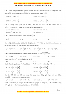 Câu 2. Trong không gian tọa độ Oxyz, cho mặt cầu và