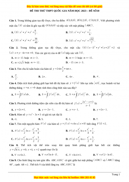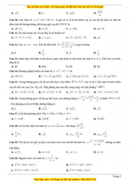 A. . B. 3. C. . D. Câu 10. Cho hàm số