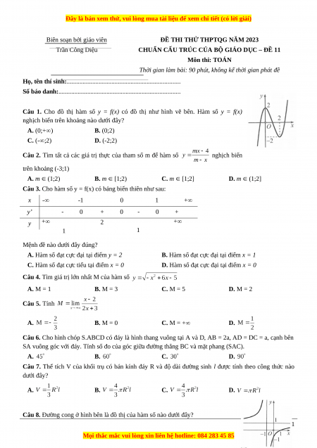 ĐỀ THI THỬ THPTQG NĂM 2023 Trần Công Diệu