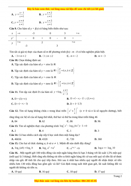 cắt trục hoành tại một điểm duy nhất A. B. C. D. Trang 3