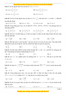 Câu 18. Cho F(x) là một nguyên hàm của hàm số thỏa mãn F(5) = 2 và F(0) = 1. Mệnh đề