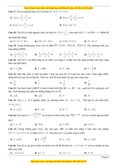 Câu 17. Tìm họ nguyên hàm F(x) của hàm số A. B. C. D.