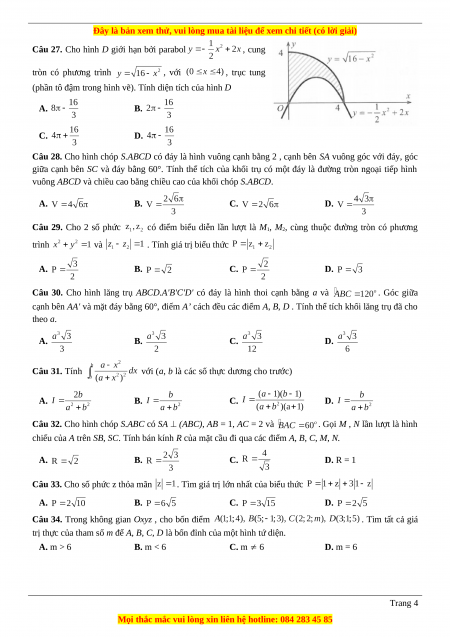 đáy. Tính khoảng cách giữa hai đường thẳng SA và CD. A. B. C. D. Câu 23. Gọi