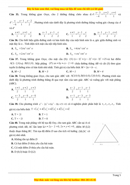 Câu 38. Trong không gian Oxyz, cho tam giác ABC với . Phương trình nào