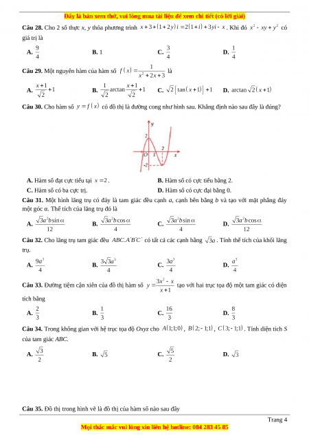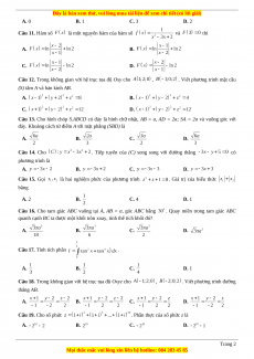 Câu 29. Một nguyên hàm của hàm số là A. B. C. D. Câu 30. Cho hàm số