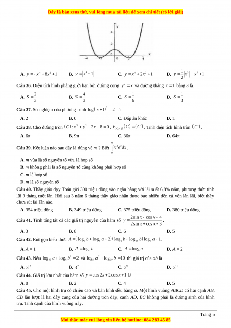 Câu 44. Giá trị lớn nhất của hàm số là A. 0 B. 2 C. 4 D. 5