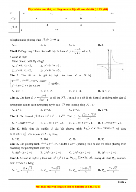 có bảng biến thiên như hình vẽ bên: Trang 1