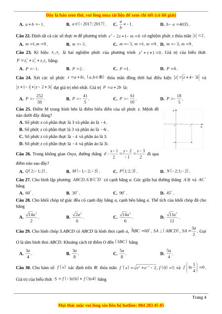 có nghiệm phức z thỏa mãn . A. . B. . C. . D. . Câu 23. Kí hiệu
