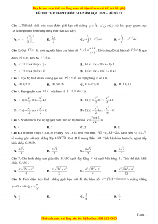 Câu 1. Thể tích khối tròn xoay được giới hạn bởi đường khi quay quanh trục