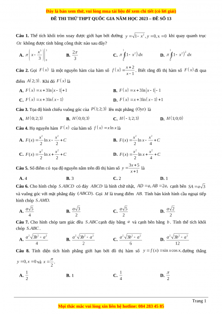 ĐỀ THI THỬ THPT QUỐC GIA NĂM HỌC 2023 – ĐỀ SỐ 13