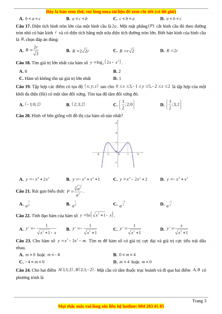 A. B. C. D. Câu 25. Cho hàm số