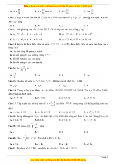 D. Không có giá trị nào của m thỏa mãn Câu 38. Hàm số có đạo hàm