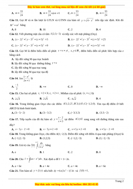 Câu 21. Tìm hàm số nếu biết và . Trang 2