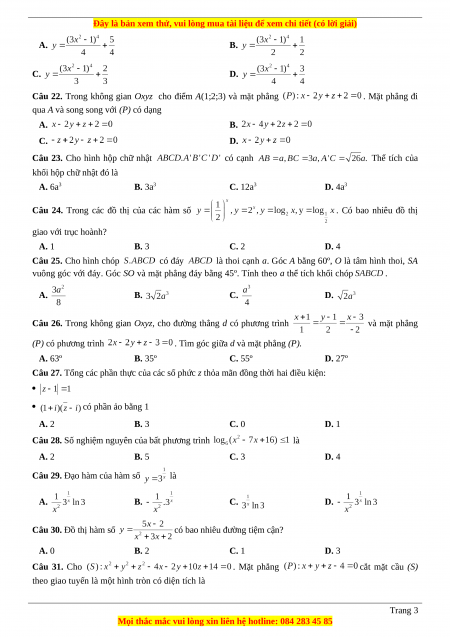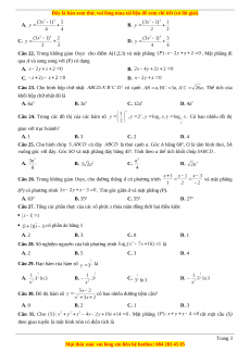 có bao nhiêu đường tiệm cận? A. 0 B. 2 C. 1 D. 3 Câu 31. Cho . Mặt phẳng cắt mặt cầu (S)