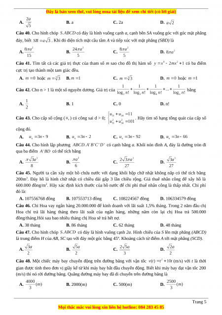 Câu 40. Cho hình chóp có đáy là hình vuông cạnh a, cạnh bên SA vuông góc với góc mặt phẳng