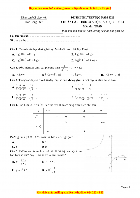 ĐỀ THI THỬ THPTQG NĂM 2023 Trần Công Diệu