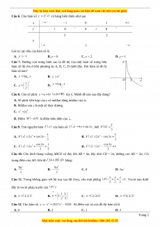 Câu 18. Trong không gian Oxyz, khoảng cách từ điểm đến mặt phẳng bằng. A. B. C. D. Câu 19. Cho hàm số