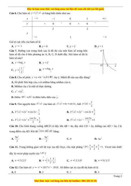 bốn hàm số dưới đây. Hàm số đó là hàm số nào? A. B. C. D. Trang 1