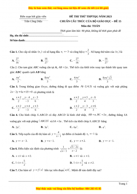 - Bộ 17 đề thi THPT Quốc gia môn Toán năm 2022-2023 có lời giải chi tiết được thầy Trần Công Diệu biên soạn công phu bám sát đề thi minh họa của Bộ GD&ĐT.