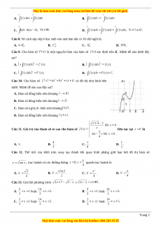 xác định trên K. Mệnh đề nào dưới đây sai? A. B. C. D. Câu 10. Cho hàm số