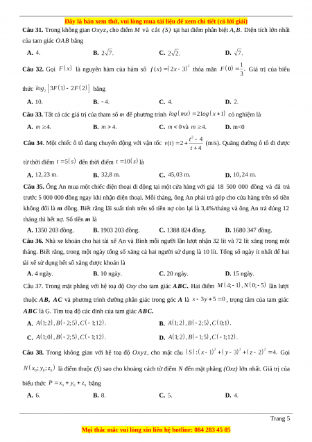 của tam giác OAB bằng A. B. C. D. Câu 32. Gọi