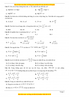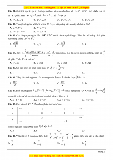 và a,b có ước chung lớn nhất bằng 1. Tính a + b A. a + b = 38 B. a + b = 37 C. a + b = 56 D. a + b = 55 Câu 38. Cho hàm số