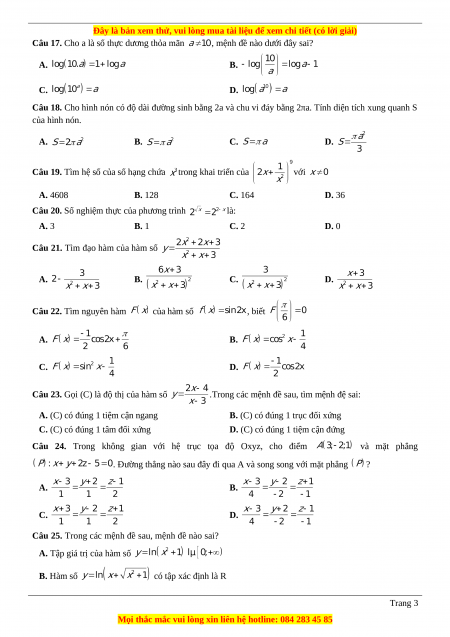 Đây là bản xem thử, vui lòng mua tài liệu để xem chi tiết (có lời giải)