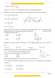 Câu 27. Cho khối chóp S.ABC có SA vuông góc với mặt phẳng (ABC) và SA = a. Đáy ABC nội tiếp