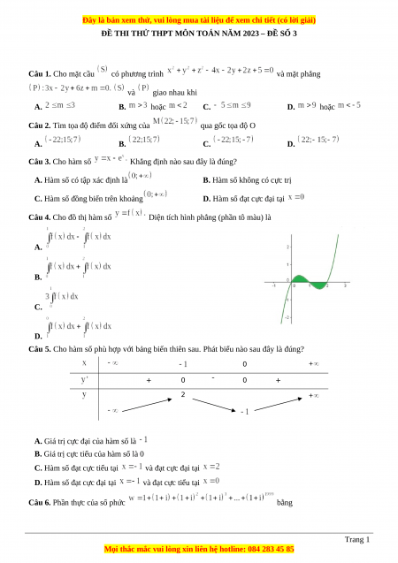 ĐỀ THI THỬ THPT MÔN TOÁN NĂM 2023 – ĐỀ SỐ 3