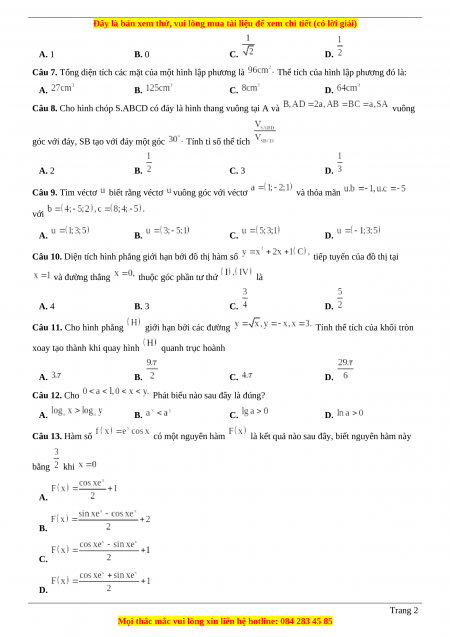 là kết quả nào sau đây, biết nguyên hàm này bằng khi A. B. C. D. Trang 2