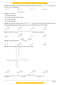 Câu 19. Hình vẽ sau đây giống đồ thị của hàm số nào nhất? A. B. C. D. Câu 20. Đặt Biểu diễn tính tổng Trang 3