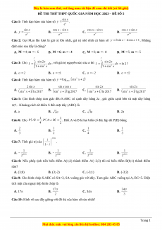 Câu 1: Tính đạo hàm của hàm số . A. B. C. D.
